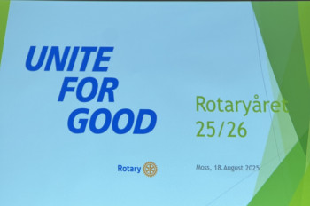 Lars Erik presenterte deretter RI presidentens hovedbudskap for Rotaryåret 2025/26 som er : Unite for good – Forent for det gode. For bak hvert Rotarty prosjekt, hvert nye medlem, hver globale utfordring finnes to ting som betyr mer enn noe annet: Vennskap og tillit.